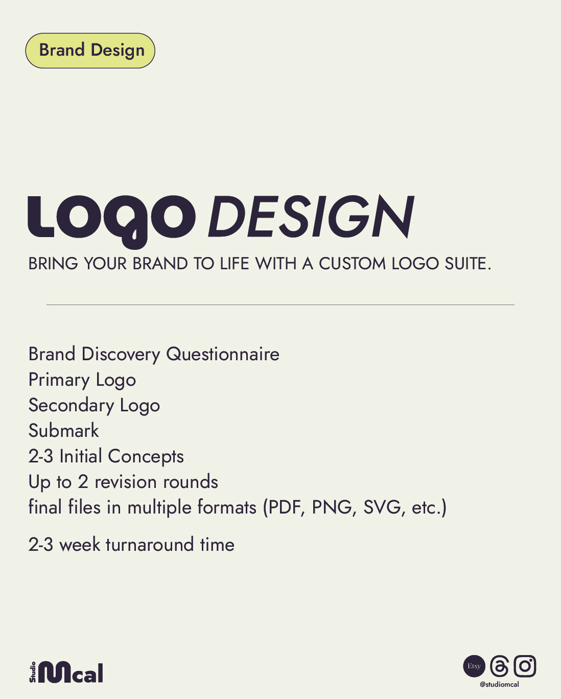 Bring your brand to life with a custom logo suite that includes a primary logo, secondary mark, and submark. Perfect for small businesses and creatives looking to stand out with thoughtful, cohesive branding.